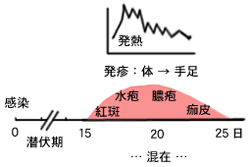 患者に接触した3日内に水痘ワクチンを接種すれば発症を予防、あるいは軽症化することができます。